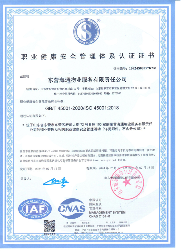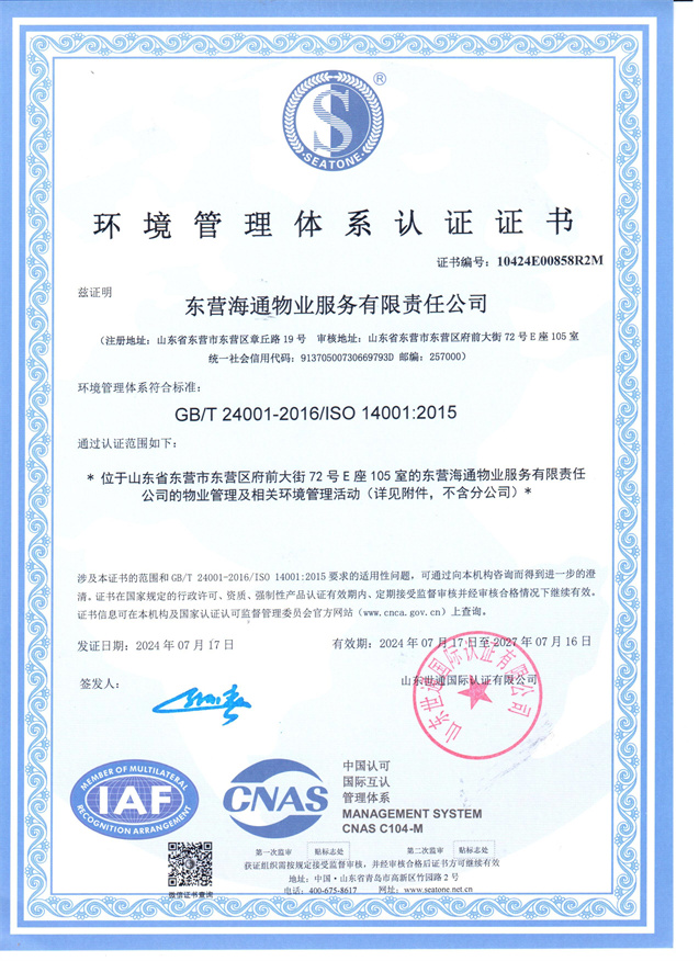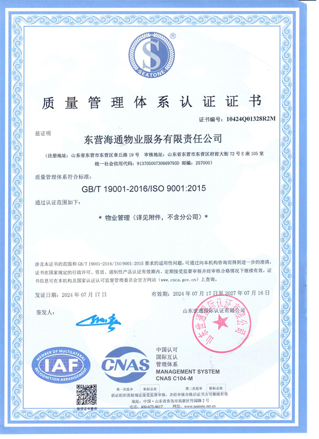 東營海通物業(yè)服務有限責任公司于2001年7月注冊成立,總部位于東營市府前大街72號海通智慧廣場,注冊資本1000萬元,是以住宅和寫字樓管理為主的專業(yè)物業(yè)管理服務商。公司現(xiàn)管理的項目覆蓋東營市各縣(區(qū))、濱州市、濰坊市、章丘市等多地域,在管項目41個,管理面積420余萬平方米,服務業(yè)戶2.7萬余戶。公司管理體系健全,管理運營規(guī)范、管理業(yè)務專業(yè),通過了第三方管理體系認證,建立了公司質(zhì)量管理體系,在行業(yè)內(nèi)先后獲得了山東省“泰山杯”獎、山東省物業(yè)行業(yè)文明創(chuàng)建標兵企業(yè)、山東省品牌建設典型示范案例、齊魯紅色物業(yè)星級服務企業(yè)等殊榮,有6個項目被評為省級、市級文明創(chuàng)建示范項目,企業(yè)在各地區(qū)域成為行業(yè)協(xié)會副會長、秘書長單位。
